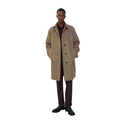 Burberry Men Long Herringbone Wool Dual Burberry Car Coat Clay brown 81176931