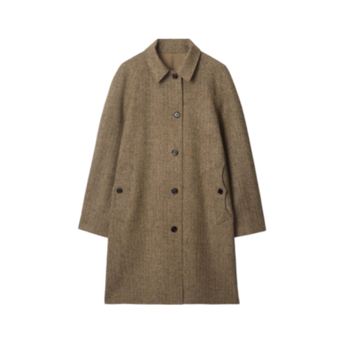 Adapting to the elements, the Dual Burberry is an archive-inspired car coat crafted in herringbone wool flannel reversing to water-resistant cotton gabardine. The exposed button style is made in Castleford, Yorkshire, and tailored to a relaxed fit with raglan sleeves for greater freedom of movement. Based on an archival design, the Dual Burberry was popularised by pioneering British aviator Alan Cobham, who wore one on a record-breaking flight from London to Australia in 1926.