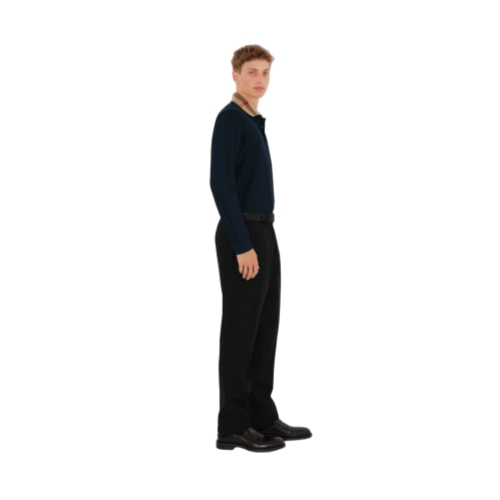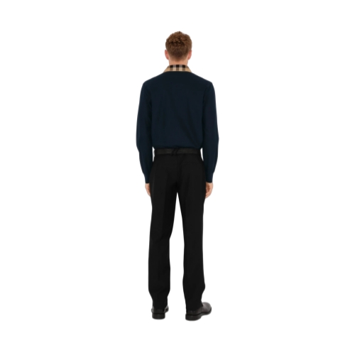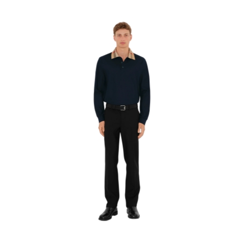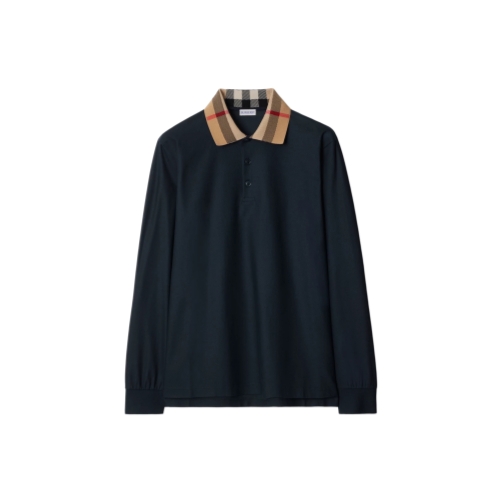 A long-sleeved polo shirt in cotton piqué, topped with a knitted Burberry Check collar. The design is cut to a slim fit.