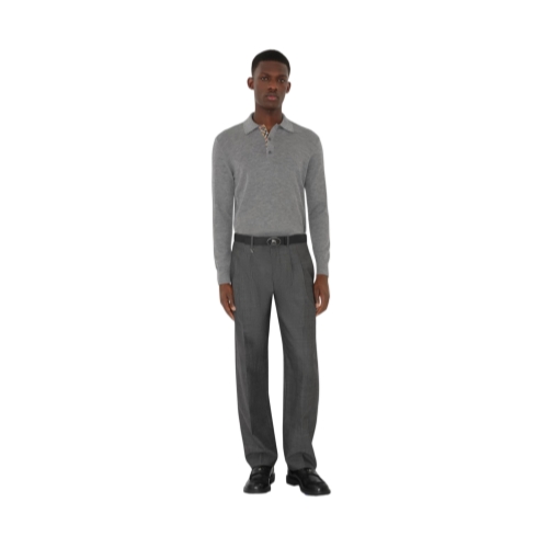 Burberry Men Long-sleeve Wool Polo Shirt Grey 81121441