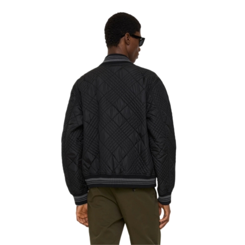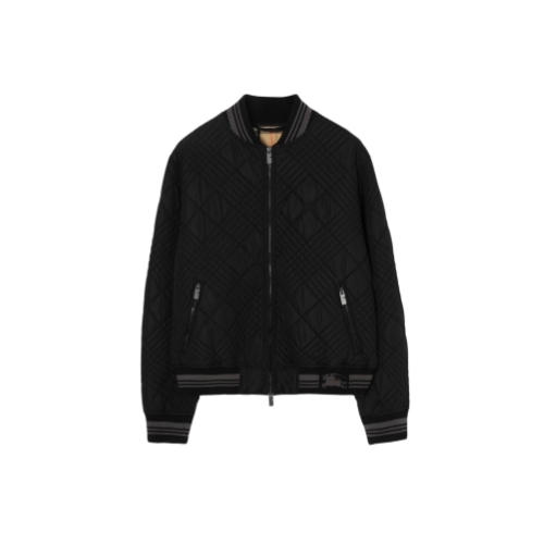 A bomber jacket in a lightweight changeant nylon blend, an archive-inspired fabric woven with contrasting yarns for an iridescent effect. The Rakewood is detailed with our micro check-stitch – a new take on quilted stitching inspired by the iconic house code. Cut to a regular fit and knitted with our Equestrian Knight Design at the striped hem.