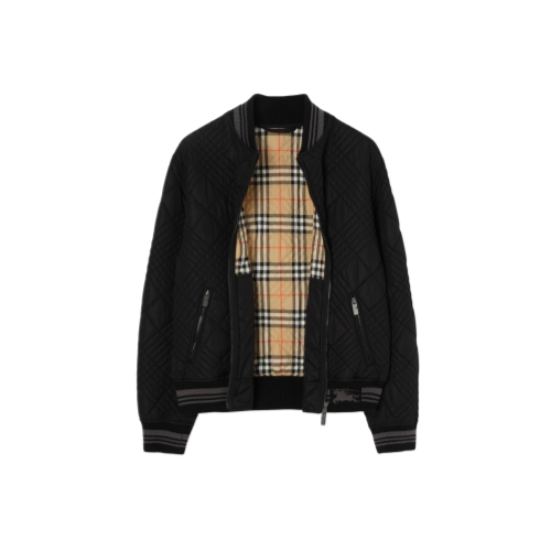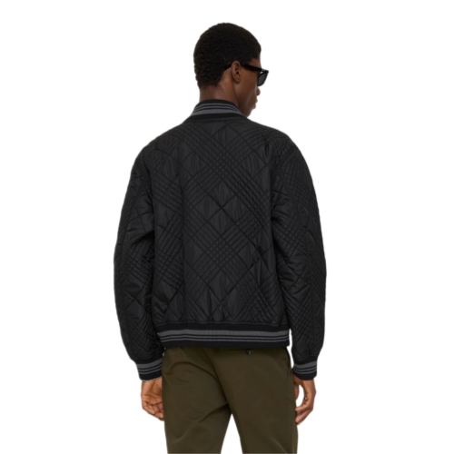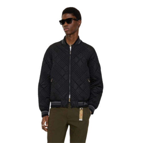 Burberry Men Micro Check-stitch Rakewood Bomber Jacket Black 81216051