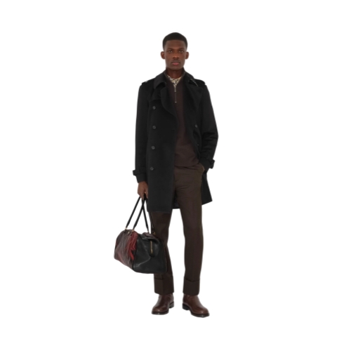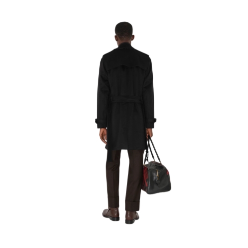 Rooted in our heritage of innovation, a trench coat in technical cashmere – designed to help you stay comfortable in the elements. The fabric is brushed for a soft finish and bonded to a thin membrane with a tonal chevron lining. Burberry Check wool cotton lines the undercollar. Cut to a regular fit with a belt to adjust the shape.