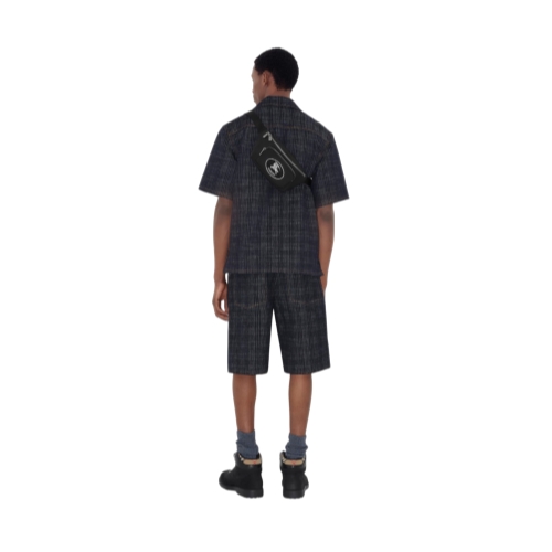 A belt bag woven with a fil coupé Knight stamp in a reflective yarn, lined in a matching colour. The archival motif was first seen on Burberry bags in the 1980s. The strap features tonal Burberry lettering and adjusts the design from a crossbody bag to wear around the waist.