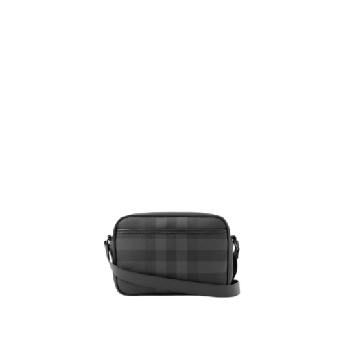 A crossbody bag woven with the Burberry Check and lined in a solid colour. The compact style is trimmed with smooth calf leather and features an adjustable strap.