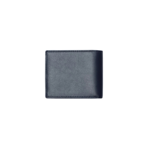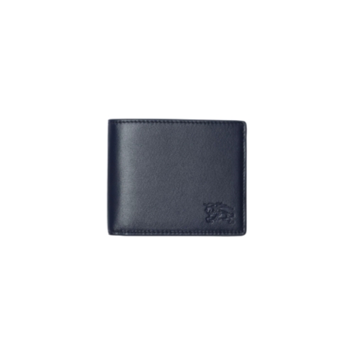 A bifold wallet made from calf leather and lined with a pop of Burberry Check in tonal navy and white. The style is finished with an embossed Equestrian Knight Design.