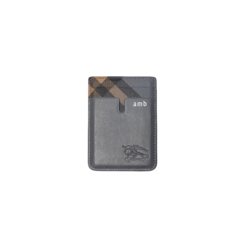 A card case made in Italy from grainy calf leather with a pop of Burberry Check in seasonal wave blue. Designed to be used with a MagSafe phone cover, the magnetic style is finished with an embossed Equestrian Knight Design.