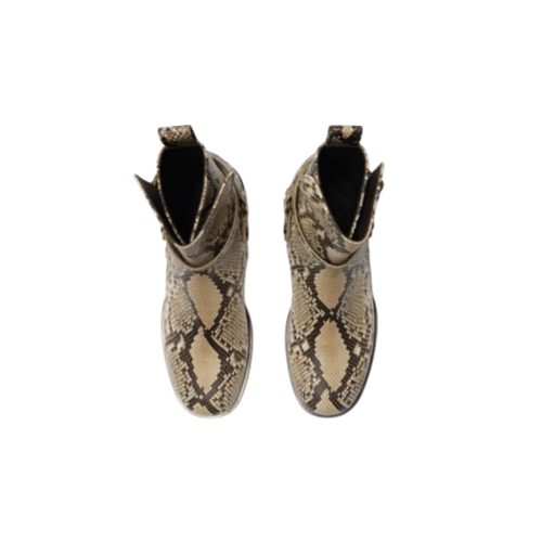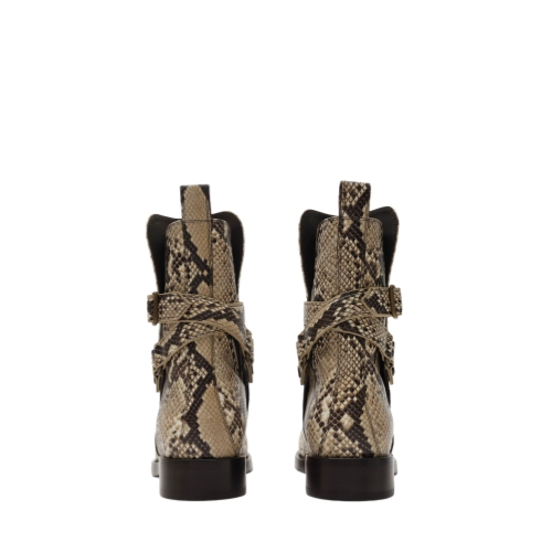 Country pursuits inform our Ledger boots, an ankle-length shape made in Italy from python-print leather – a new edition debuted on the Burberry Summer 2026 runway. The equestrian-inspired style features pull tabs and a B buckle strap with a matt finish. Our Equestrian Knight Design is moulded at the sole in signature Knight Blue.