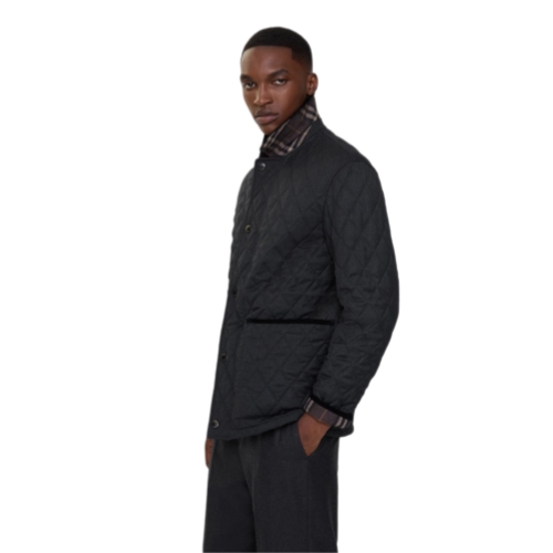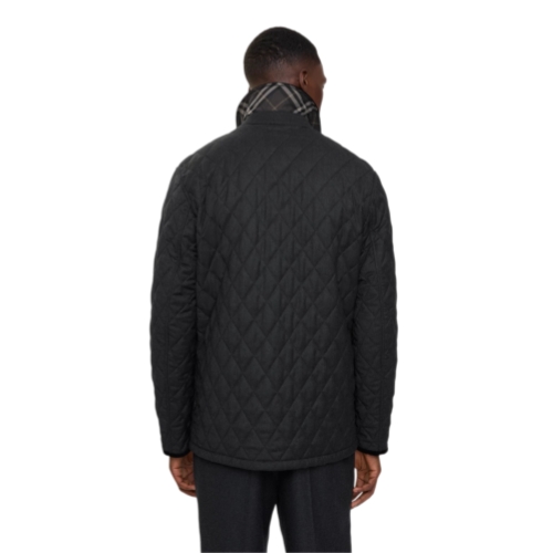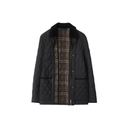 A quilted barn jacket made from lightweight wool flannel, lined with Burberry Check cotton twill in a seasonal truffle brown colourway. The style is cut to a regular fit with a corduroy collar and trims.
