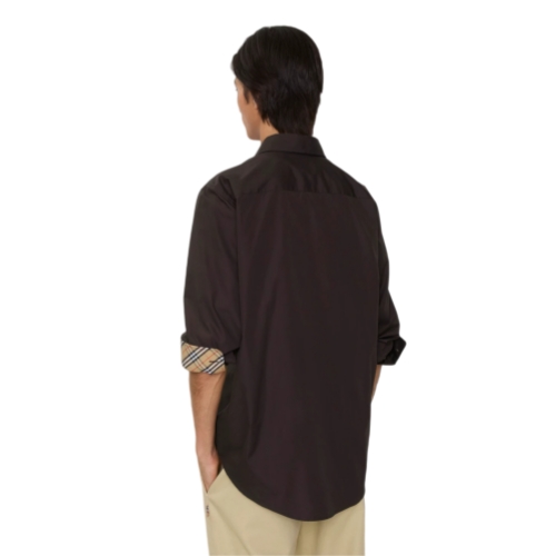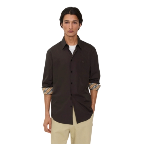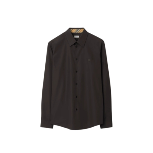 A long-sleeved shirt made from cotton poplin, lined with Burberry Check at the collar and cuffs. The style is cut to a regular fit and embroidered with a tonal Equestrian Knight Design.