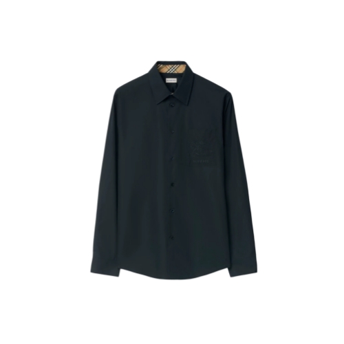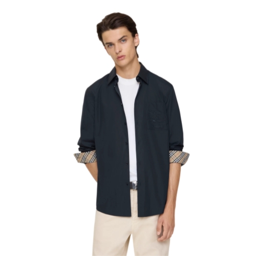 A long-sleeved shirt in cotton poplin, cut to a regular fit. The style is embroidered with a tonal Equestrian Knight Design and our logo. Fold back the cuffs to reveal the Burberry Check lining in signature sand beige.