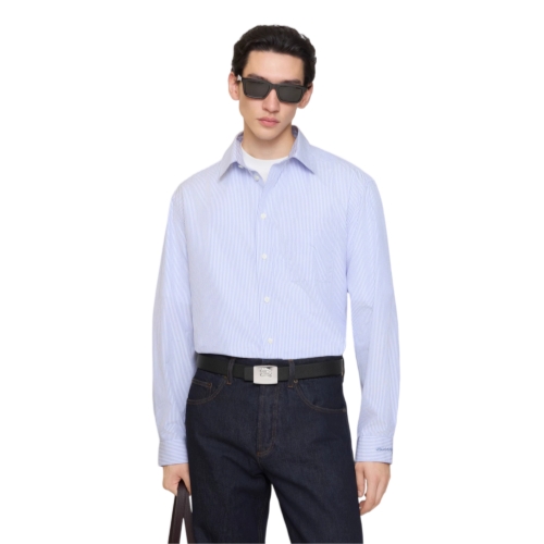 A long-sleeved shirt tailored from striped cotton poplin, cut to a regular fit. The design is embroidered with a tonal cursive logo at the cuff.