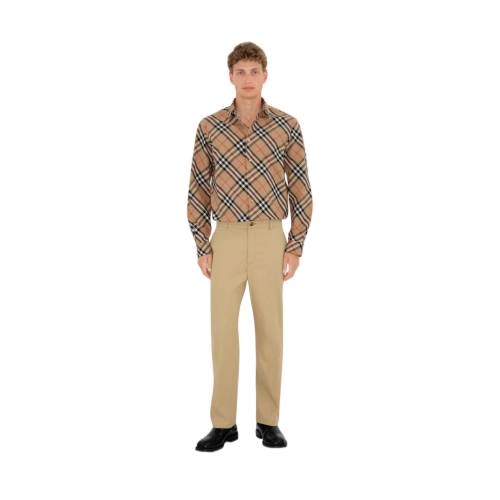 A long-sleeved shirt in cotton poplin, woven with the Burberry Check in signature sand beige. The design is tailored to a relaxed fit.