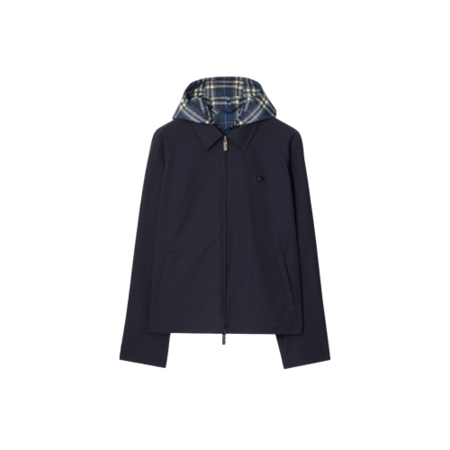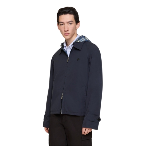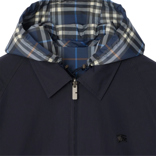 A Harrington jacket made from lightweight cotton canvas, with a Burberry Check reverse in seasonal pilot blue. Comes with a matching detachable hood for unpredictable weather. The style is cut to a regular fit and is detailed with our Equestrian Knight Design motif in an antique finish.