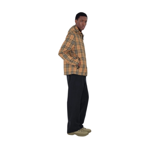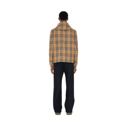 A lightweight jacket reversing from the Burberry Check to a solid colour nylon with a logo appliqué. The hooded style is cut to a relaxed fit.