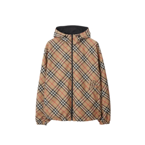 A lightweight twill jacket with a drawcord hood, cut to a relaxed fit. The reversible design switches from the Burberry Check to a solid colour and is appliquéd with our Equestrian Knight Design. Part of Burberry Classics, wardrobe foundations with a unique Burberry slant.