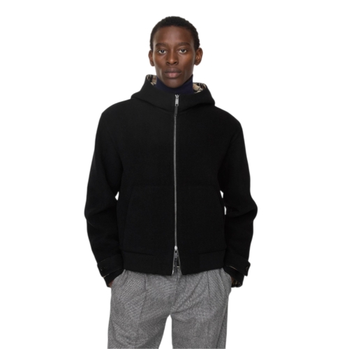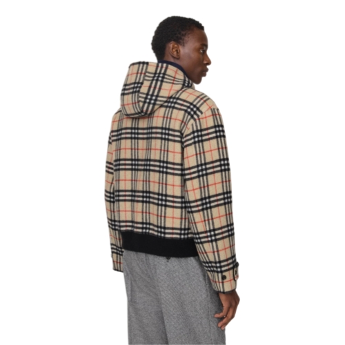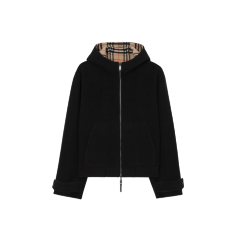A hooded jacket in double-faced wool twill, brushed for a softer finish. Made in Italy, the versatile style reverses to the Burberry Check in signature sand beige and is shaped to a regular fit. The style is finished with a rib-knit hem.
