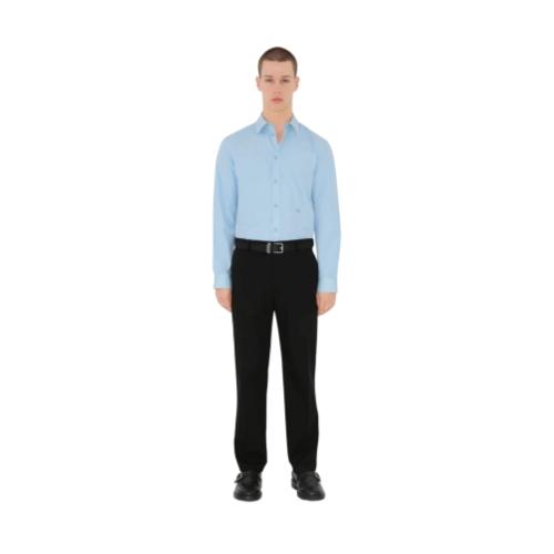 A long-sleeved shirt in Italian-woven cotton poplin, embroidered with the Equestrian Knight Design. The formal style is tailored to a slim fit.