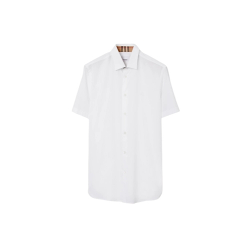 A short-sleeved shirt in stretch cotton, embroidered with the Equestrian Knight Design. Tailored to a slim fit, the style is lined with Burberry Check at the collar and cuffs.