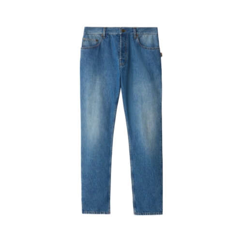 A pair of jeans made in Italy from denim, cut to a slim fit. The five-pocket style is detailed with a Burberry Check tab and suede patch embossed with the Equestrian Knight Design.