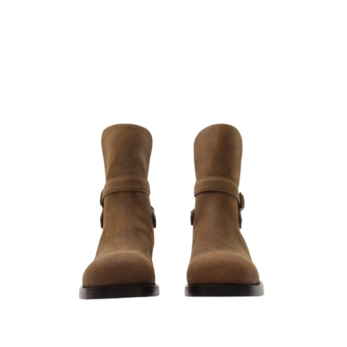 Country pursuits inform our Ledger boots, an ankle-length shape made in Italy from waxed calf suede – a new edition debuted on the Burberry Summer 2026 runway. The equestrian-inspired style features pull tabs and a B buckle strap with a matt finish. Our Equestrian Knight Design is moulded at the sole in signature Knight Blue.