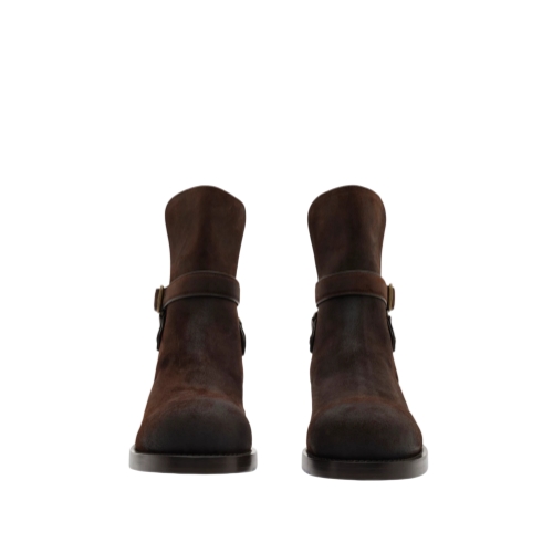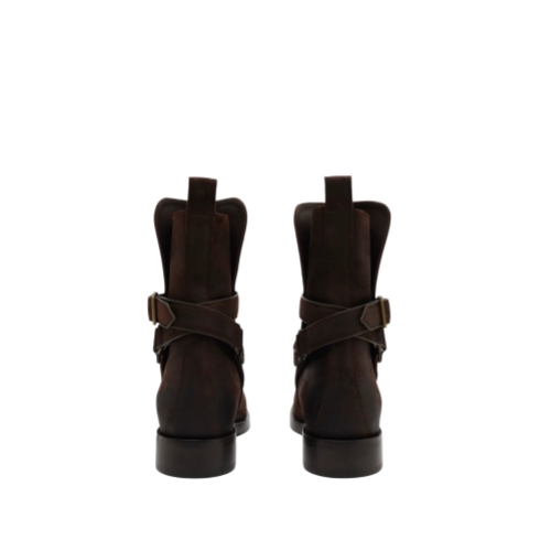 Country pursuits inform our Ledger boots, an ankle-length shape made in Italy from waxed calf suede – a new edition debuted on the Burberry Summer 2026 runway. The equestrian-inspired style features pull tabs and a B buckle strap with a matt finish. Our Equestrian Knight Design is moulded at the sole in signature Knight Blue.