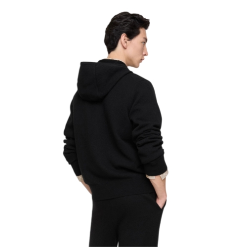 A zip hoodie in lightweight wool, knitted to a regular fit. The style is subtly detailed with our Equestrian Knight Design in tonal cross-stitch and a debossed leather zip pull.