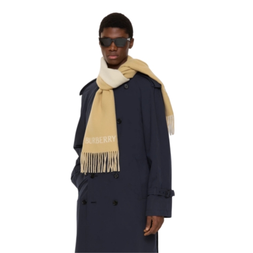 An Italian-made scarf in double-faced cashmere, embroidered with a metallic crest. Inspired by an archival design, it features our B shield, a garland of oak leaves and a banner with the date Burberry was founded. The two-tone design is jacquard-woven with Burberry lettering and brushed for a soft finish.