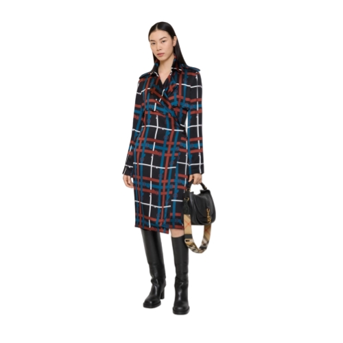 A wrap dress made in Italy from fluid viscose crepe. Printed with an archival design, the belt from our iconic raincoat is reimagined as the Burberry Check. A gun flap and epaulettes are further nods to our signature rainwear. Shaped to a regular fit with a B buckle belt to adjust the waist.