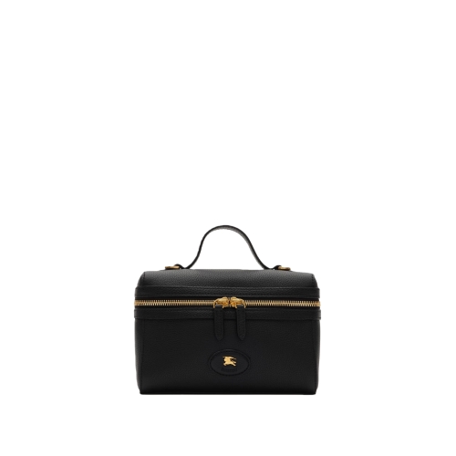 A vanity case crafted in Italy from grainy calf leather, lined in a cotton blend woven with the Burberry Check. Part of the Bloomsbury collection, the compact style is defined by a leather and metal Knight stamp – an archival motif first seen on Burberry bags in the 1980s. Carry by the top handle, across the body or on the shoulder using the detachable strap.