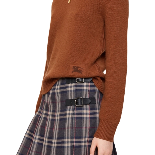 A sweater made from ultra-soft cashmere with a hint of stretch, cut to a regular fit. The crew-neck style is knitted with tonal elbow patches, chain-stitching at the shoulders and a contrasting Equestrian Knight Design.