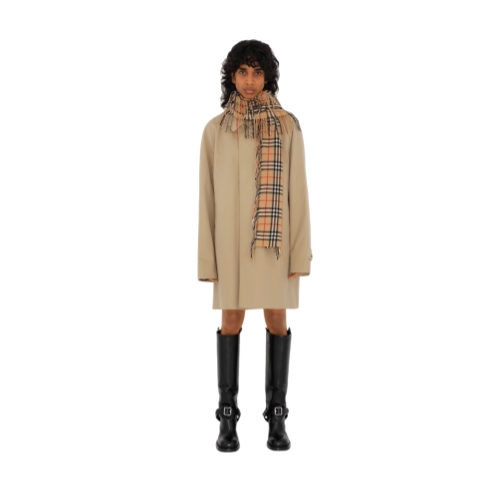 A cashmere scarf woven with the Burberry Check. Inspired by an archive style, the design features fringing at both sides. Made at a 200-year-old Scottish mill, the fabric is washed in local spring water and brushed with teasels for an ultra-soft finish.