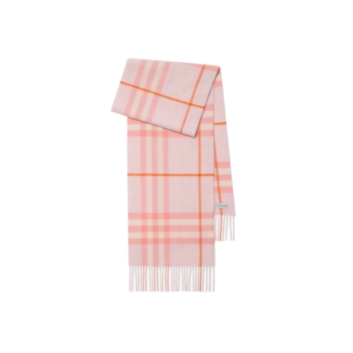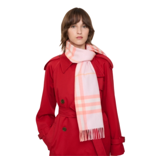 The iconic Burberry Check cashmere scarf, made in Scotland at a mill founded in 1797. Woven on traditional looms, the scarf takes more than 30 steps to complete. The fabric is washed in local spring water and brushed with teasels – dried flowers that are drawn along the surface of the cashmere to 'raise' the cloth, creating a natural lustre and ultra-soft finish.