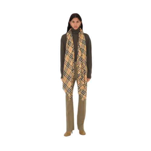 Burberry Women Wide Reversible EKD Cashmere Scarf Archive beige 80737681