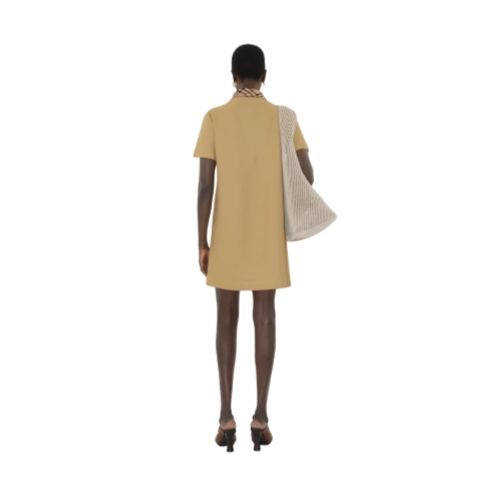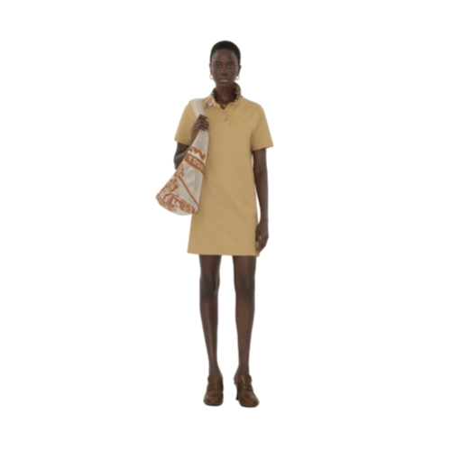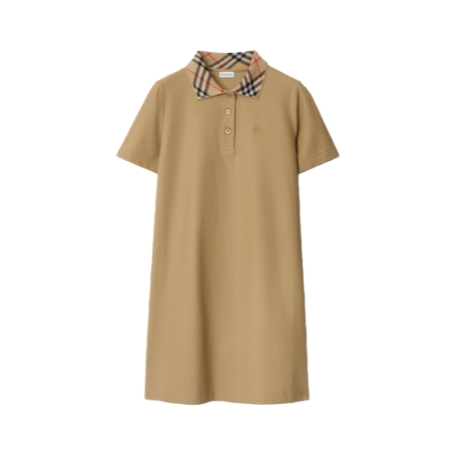 A polo shirt dress in lightweight cotton piqué, topped with a Burberry Check collar in our signature sand colourway. The style is cut to a slim fit and embroidered with a tonal Equestrian Knight Design.