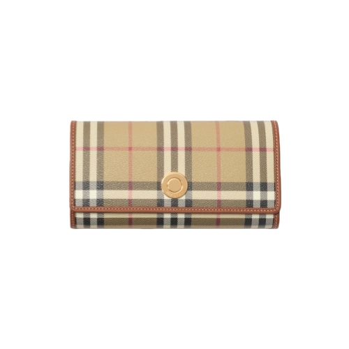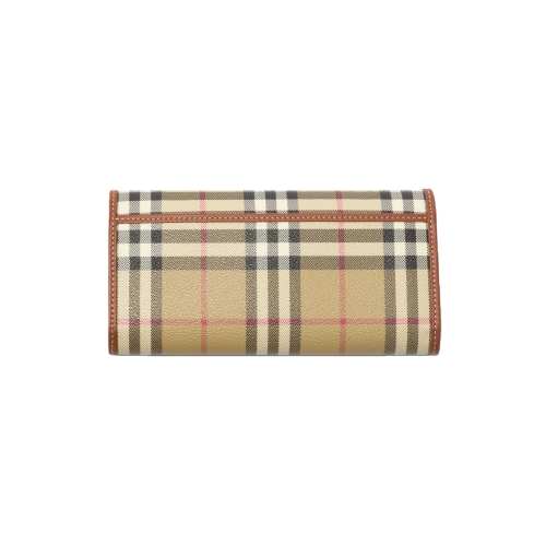 A continental wallet made from a coated cotton blend printed with the Burberry Check. The design is trimmed in calf leather and detailed with a logo-engraved press stud.