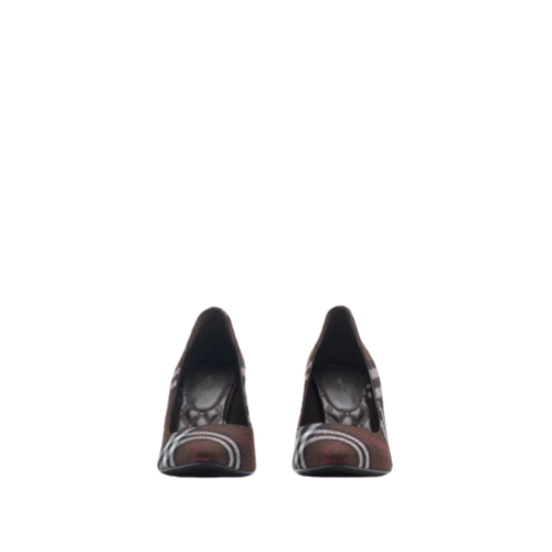 Point-toe pumps made in Italy from wool woven with the Burberry Check and set on a stiletto heel. The quilted leather insole is padded for comfort and the sole is embossed with the Equestrian Knight Design in signature Knight Blue.