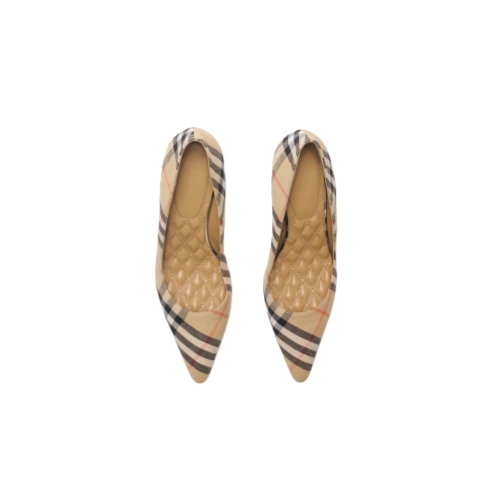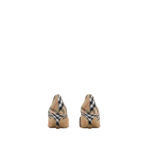 Point-toe pumps made in Italy from a stretch linen, woven with the Burberry Check and set on a kitten heel. The quilted leather insole is padded for comfort, and the sole is embossed with the Equestrian Knight Design in signature Knight Blue.
