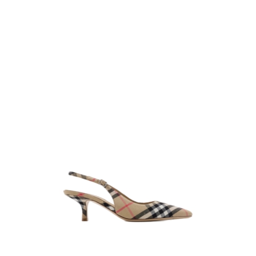 Point-toe slingback pumps made in Italy from a stretch linen blend, printed with the Burberry Check and set on a kitten heel. The style features an adjustable strap and a quilted insole for comfort.