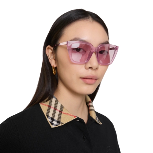 A pair of lightweight square-frame sunglasses made in Italy from transparent nylon. The contrasting metal temples are engraved with our signature check and logo.