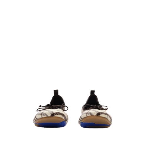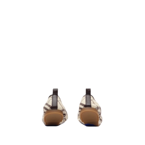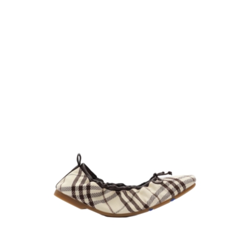 A pair of gathered ballerinas made in Italy from a Burberry Check cotton blend, edged with smooth leather trims and a matching bow detail. The quilted leather insole is padded for comfort and the sole is embossed with the Equestrian Knight Design in signature Knight Blue.