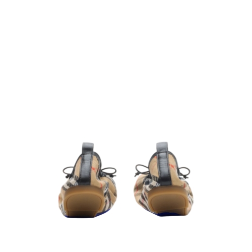 A pair of gathered ballerinas made in Italy from a Burberry Check cotton blend, edged with smooth leather trims and a matching bow detail. The quilted leather insole is padded for comfort and the sole is embossed with the Equestrian Knight Design in signature Knight Blue.