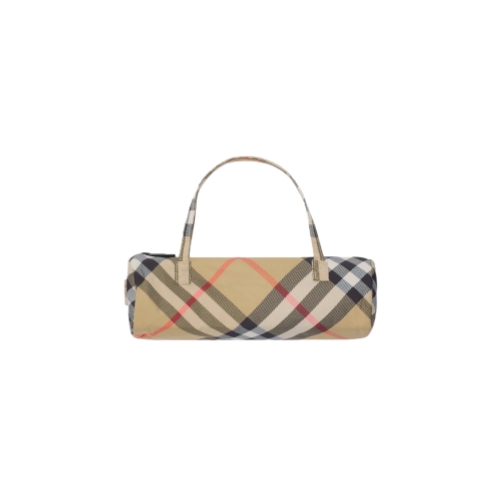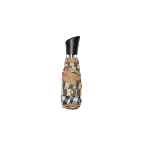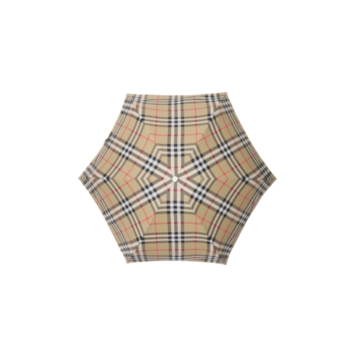 A folding umbrella made from nylon woven with the Burberry Check. The style is finished with a wooden handle and metal cap engraved with the Equestrian Knight Design. Part of Burberry Classics, wardrobe foundations with a unique Burberry slant.
