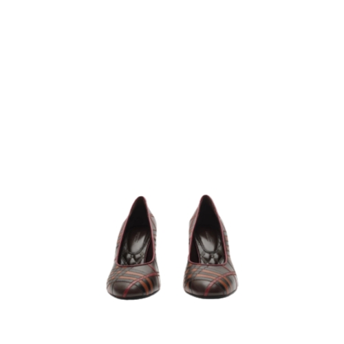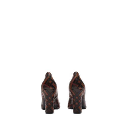Pumps made in Italy from panels of leather, intricately cut and hand-stitched to form an intarsia Burberry Check. The Trinket is set on a sculptural block heel and the sole features our Equestrian Knight Design in signature Knight Blue.