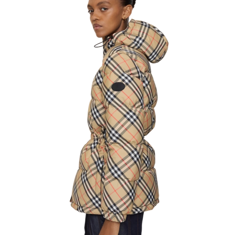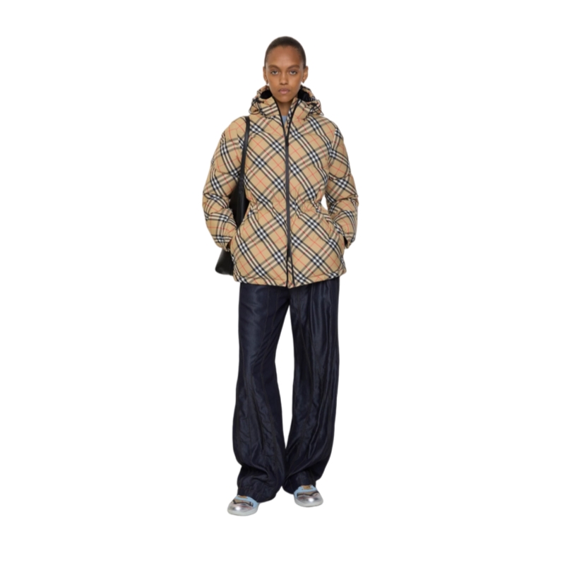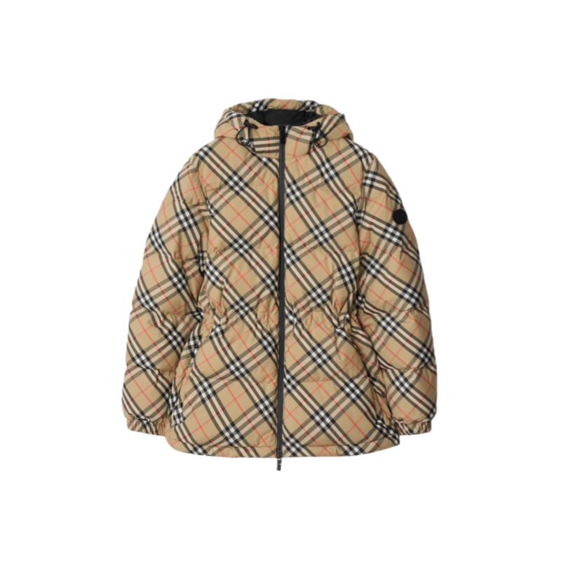 A hooded puffer jacket in our Burberry Check. Cut to a regular fit, the design features a drawcord waist to adjust the silhouette and is finished with B-cut zip pulls and the Knight stamp – an archival motif first seen on Burberry bags in the 1980s.