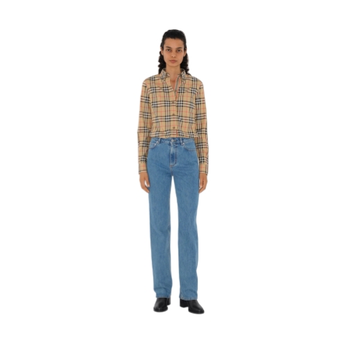 A shirt in stretch cotton twill woven with the Burberry Check. The design is cut to a slim fit and features a grosgrain Icon stripe ribbon concealed at the placket and cuffs.