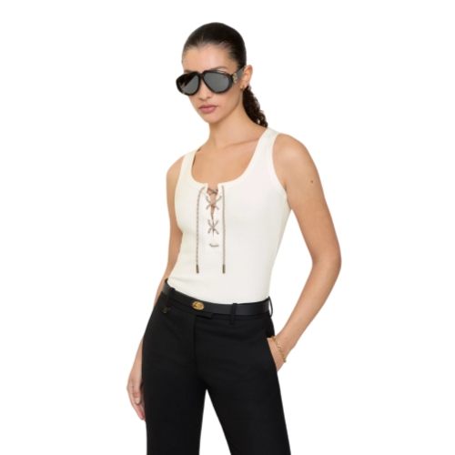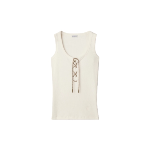 A rib-knit tank top in a cotton blend jersey, cut to a slim fit. The front is laced with an adjustable drawcord in signature archive beige Burberry Check.