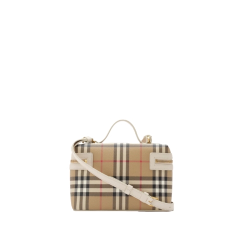 A compact bag made in Italy from a cotton blend, printed with the Burberry Check in signature archive beige and trimmed with topstitched calf leather. The structured silhouette is inspired by vanity cases, opening to a single main compartment. Carry by the top handle, across the body or on the shoulder using the detachable strap.