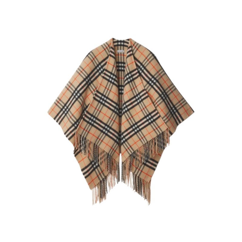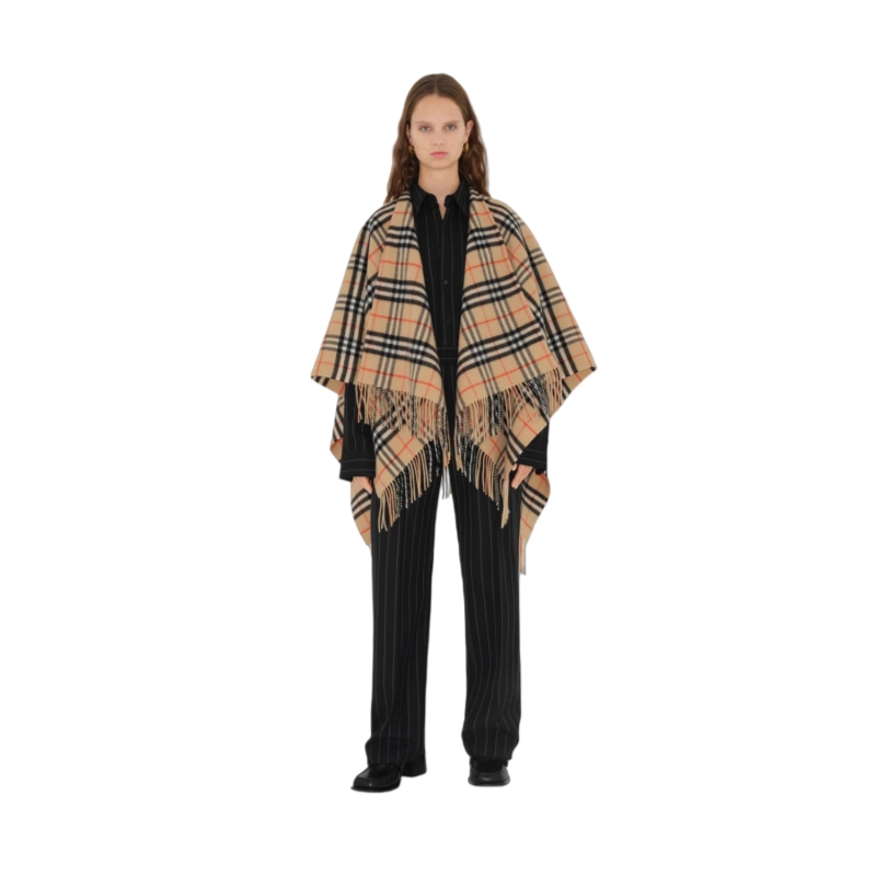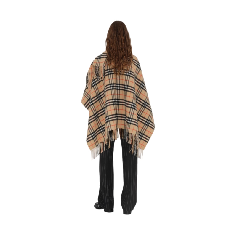 A cape made from lightweight wool cashmere, woven in the Burberry Check at a 200-year-old Scottish mill. The fabric is washed in local spring water and receives two additional washes for an ultra-soft finish and raised nap. Part of Burberry Classics, wardrobe foundations with a unique Burberry slant.