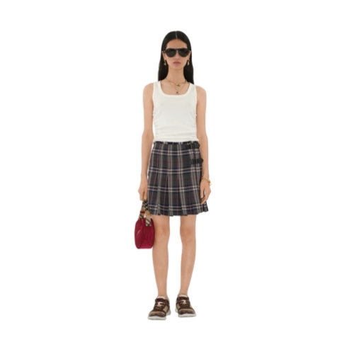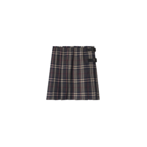 A mini kilt made from wool woven with the Burberry Check. The A-line silhouette is tailored with pleats and can be adjusted with the calf leather B buckle straps.